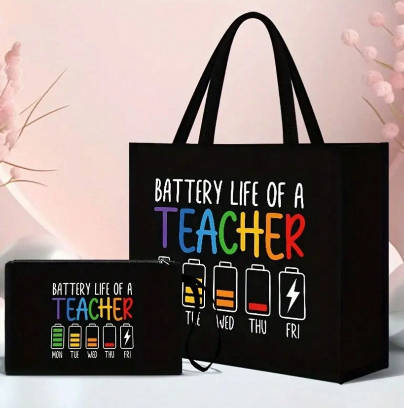 Vidám táskaszett mókás mintával! Pedagógusnapra, ajándékba tökéletes! A csomag tartalma: 1 db nagyméretű hordtáska 1 db kozmetikai táska / tolltartó cipzárral Nyomott mintával. Anyaga:Poliészter Táska mérete: 32×15 x 28 cm Tolltartó: 14×21 cm